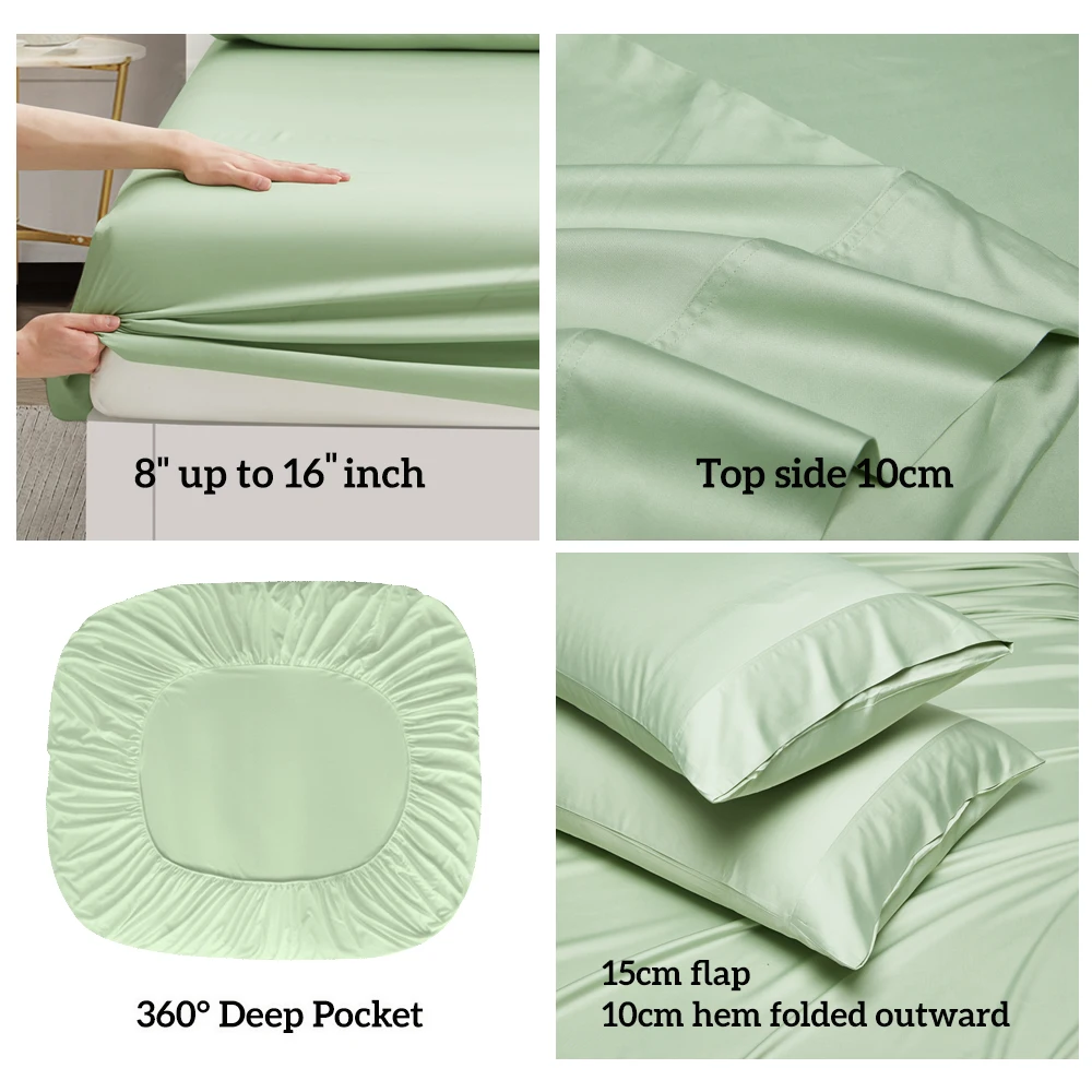Custom Cyan Color 4-Piece Bedding Set 100% Bamboo Bed Sheet with Anti-Allergy Pillowcase